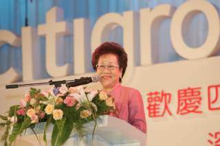 副總統表示,俗話說女人「四十一枝花」,她十分欣喜聽到台灣花旗銀行已經四十歲了,感謝花旗銀行看上台灣,與台灣一起成長,並陪伴台灣邁向國際化,因此台灣花旗今日的成就也可以說是台灣的成就。