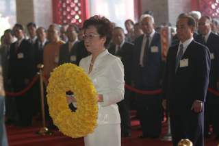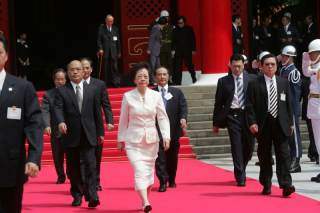 上午十時正,在崇戎樂聲中,副總統由總統府秘書長蘇貞昌陪同抵達忠烈祠。