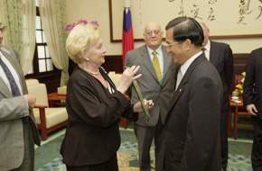 歐洲議會友台小組主席亞森柏斯基(Georg JARZEMBOWSKI)、副主席安迪生(Ole ANDREASEN)、歐洲議會議員賈米松(Felipe CAMISÓN ASENSIO)、巴斯托瑞里(Paolo PASTORELLI)、柏梅思(Javier POMÉS RUIZ)、盧琳(Astrid LULLING)等一行,上午由外交部次長邱榮男陪同,前來總統府晉見總統。總統府秘書長陳師孟也在座。