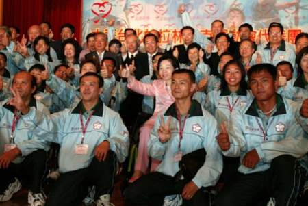 還記得一個禮拜前,阿扁剛從「共創雙贏、胸懷世界」之旅回來,許多隨行的記者朋友都大呼行程緊湊,實在讓人吃不消。其實,每當阿扁一想到接下來拼體育、拼外交的接力棒要交到阿珍手上,連身體不好的她都傾全力、堅持親自擔任「中華帕拉林匹克代表團」的團長,阿扁當然要以「鐵人團長」的拼勁以身作則,希望為台灣的國際邦交奔走、打拼,所以阿扁也要對這次所有隨行工作人員先說聲:「大家辛苦了!」