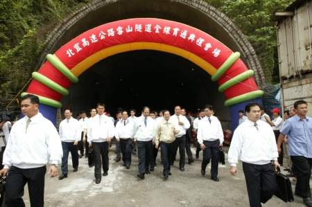 阿扁在此,要特別感謝施工團隊不畏艱難危險,日以繼夜的打拼,終於把這條世界公認難度最高的隧道給打通了。這條世界第五長、也是東南亞第一長公路隧道的完成,讓世界上所有的隧道工程專家不得不對我們的技術、能力刮目相看,各位的成就,已經為工程界豎立了一個非常輝煌的里程碑,也再一次驗證了執政團隊勇於面對挑戰、積極努力,終究達成目標的高度執行力。