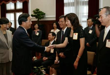 我們都知道,公務人員是政策的規劃者,更是政策的執行者,本身所具有的專業素養及行事風格,關係著政府機關的運作及政策執行的成敗,進而影響政府形象及國家競爭力。各位都是我們各單位的表率與楷模,具有卓越的知識經驗,更有服務同胞的熱忱。阿扁期盼各位,都能成為我們政府在各機關中,推動政府改造,實踐國家願景的種子;將政府改造的精神擴散出去,進而帶動全體公務人員、同仁先進、工作夥伴,塑造富有創意活力的優質行政團隊,為共同的美麗願景攜手打拼。