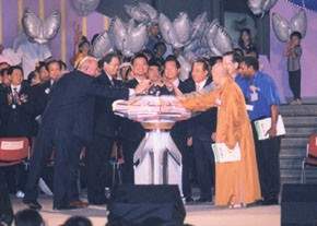 非常感謝籌備本大會的青商會、各個民眾團體,還有趕來參加今天「愛與和平全民團結嘉年華會」大會的民眾,由於大家熱烈的參與,使得這次活動這麼成功。今天我們齊集一起,用最理智、最柔性的方式,來面對兩岸關係這麼一個嚴肅的問題,希望藉此明白的發出台灣人民熱切期望和平的心聲。