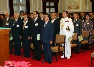 月會於上午十時在總統府大禮堂舉行,總統由總統府秘書長蘇貞昌陪同抵達會場,其他政府首長均與會參加。