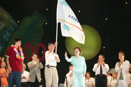 呂副總統秀蓮女士今天晚間參加在總統府前廣場所舉行的中秋晚會「世界的月亮一樣圓-為台灣加油祈福」,除祝福全國民眾及教師佳節愉快外,並為將代表台灣參加電玩比賽的選手戴幸運花圈。