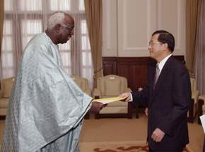塞內加爾共和國新任駐華大使狄亞尼(Youssou DIAGNE)今天向陳總統水扁先生呈遞到任國書。