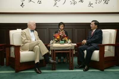 孔傑榮教授夫婦上午由美國在台協會台北辦事處處長包道格(Douglas Paal)陪同前來總統府晉見總統,總統府副秘書長黃志芳也在座。