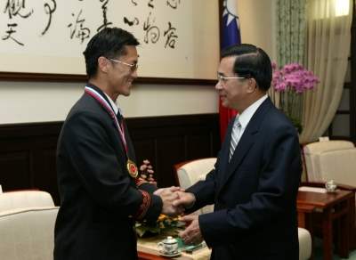 首先阿扁要恭喜各位在本屆亞洲盃空手道錦標賽中獲得優異的成績,為國爭光,可喜可賀,也讓所有的臺灣人都感到與有榮焉。