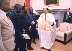 為表示賴國人民對中華民國的友好關係,林利主席並當場為總統套上象徵該國傳統最高酋長地位的白袍,總統欣然接受,並說,下次將穿該套白袍訪問賴比瑞亞。