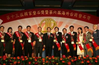 陳總統水扁先生今天下午參加「第十三屆國家磐石獎暨第六屆海外台商磐石獎」頒獎典禮,總統致詞表示,政府與產業界是生命共同體,也是最佳伙伴關係,他誠摯希望能在政府與民間攜手打拼之下,突破兩岸之間的侷限,持續開創台灣未來經濟的榮景。