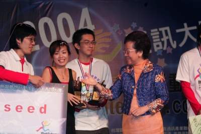 呂副總統秀蓮女士今天晚間出席「二00四年打造夢想行動家通訊大賽頒獎典禮」,並代表主辦單位頒發一百萬元獎金給獲得第一名的參賽同學們。副總統於致詞時期盼所有的科技菁英們能夠做到「本土與國際結合、人文與科技兼修」,大家一同努力,使世界的未來更美好。