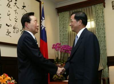 陳總統水扁先生今天傍晚接見韓國前大統領金泳三,除了對金前大統領不畏風雨的來訪表達歡迎之意,也特別推崇他在韓國民主化與現代化過程所做的付出與努力。
