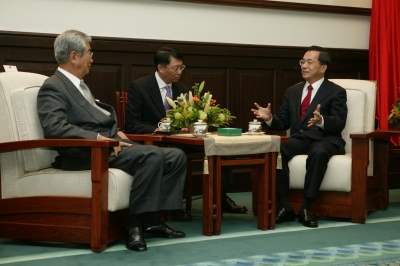 日本東京都知事石原慎太郎上午由外交部長陳唐山陪同,前來總統府晉見總統,國家安全會議秘書長邱義仁也在座。
