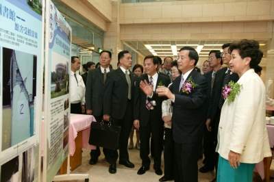 陳總統水扁先生今天上午前往台中參加國立中興大學八十五週年校慶、九二一震損樓館重建落成暨台灣文學研究所揭牌典禮,並在致詞後則為中興大學圖書館落成啟用剪綵,及台灣文學研究所的成立揭牌。
