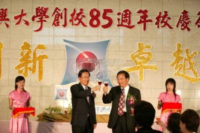 總統指出,國立中興大學歷史悠久、根基深厚、師資優良、校園美麗、研究成果豐碩;它以農學院起家,八十五年來在歷任校長領導及全體師生和同仁的努力之下,已發展出七個學院,到目前為止是中部地區唯一的國立綜合大學,為國家培養了不少人才,對社會有非常大的貢獻。