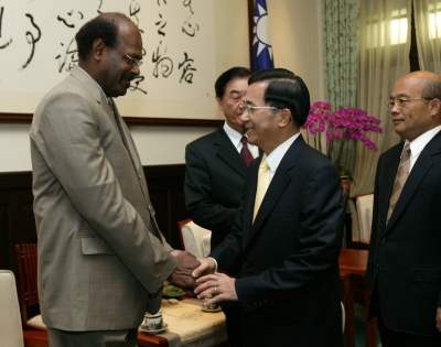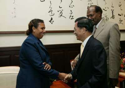 陳總統水扁先生今天上午接見萬那杜共和國總理渥荷(H.E. Serge Vohor)伉儷,共同祝賀我國與萬國於今天早上正式建立外交關係。總統並代表中華民國政府與人民感謝渥荷總理長期以來對我國的友好與支持,表達誠摯感謝之意。