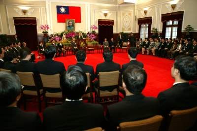 陳總統水扁先生今天下午接見凱達格蘭學校「國家領導與發展策略班」校友,對於他們傑出的表現、強大的向心力和使命感及對國家社會的貢獻,總統表示感到與有榮焉,並期盼每一個凱達格蘭學校的校友,都能對國家有愛、對土地有情、對人民有義。