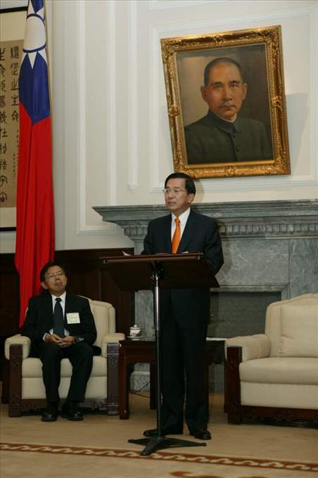 今天阿扁很高興在總統府和大家見面,首先要代表政府向在座的四位「個人成就獎」,以及十九家的「企業獎」得主,表示由衷的感謝與祝賀之意。各位傑出的表現,不但代表著台灣產業追求卓越,不斷尋求突破與創新的努力與決心,同時也是企業投入研究與發展最佳的典範,帶動了國內企業不斷精益求精的良性競爭模式,可以說是台灣產業革新最大的推手與功臣。
