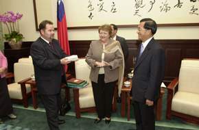 英國蘇格蘭地區國會下議院議員亞當絲(Irene Adams)、羅伊(Frank Roy)、瑪肯娜(Rosemary McKenna),下午由外交部次長邱榮男陪同,前來總統府晉見總統,總統府副秘書長吳釗燮也在座。