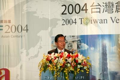 陳總統水扁先生今天上午參加「二00四年台灣創投論壇」。總統於致詞時肯定創投過去二十年以來,對台灣科技產業與經濟發展所做出的卓越貢獻,他也期盼創投業者能夠在既有基礎上,不斷突破,精益求精,讓創投成為激發台灣創新、速度與活力最重要的力量。