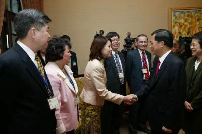 首先阿扁謹對大家專程回國參訪表示熱烈歡迎之意。各位在僑居地熱心僑益,不僅是當地僑界的領導菁英,平日更是積極服務僑胞,從事各項公益事業,贏得各方重視與高度尊敬;長期以來堅定支持我國政府,成為台灣發展的重要助力,阿扁謹在此代表中華民國政府及全國同胞向各位表達最崇高的敬意與最誠摯的謝意。
