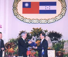 陳水扁總統閣下代表中華民國政府及人民,對宏都拉斯共和國近年來在國際間給予中華民國之堅定支持深表謝忱,對馬度洛閣下致力於國家建設、強化宏國民主體制、實施政治、司法改革、維護治安之成果,以及促進中美洲地區整合之貢獻,表示讚揚。