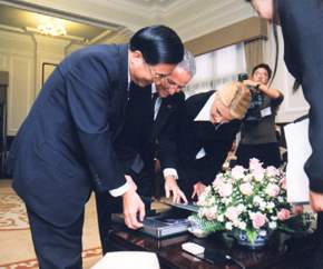 陳總統水扁先生今天上午與來訪的宏都拉斯共和國馬度洛總統共同簽署聯合公報。