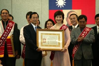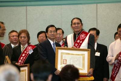 剛才,我們看了「文化薪傳」三位老師的表演,雖然只是短短幾分鐘,卻展現了我們文化藝術多元與豐富的面向,同時,我們也頒發了本土藝術大師黃俊雄、鍾任壁以及剛剛榮獲第十一屆「中華文化薪傳獎」十二位得主的獎狀,阿扁和各位會員先進一樣,對這幾位國寶級的文化藝術大師,內心充滿了敬仰與感謝,有各位大師先進在這塊土地的努力耕耘,不論是本土或國際、傳統或現代,不論是歌謠、書法、或是傳統的戲劇、民俗武藝獅陣,或者是美術、工藝,各位的傑出成就,已證明你們不僅是「文化的傳承者、發揚者」,更是「文化的草根大使」,阿扁要再次的恭喜與肯定各位。