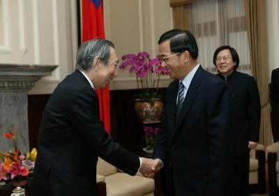 服部禮次郎會長一行上午在亞東關係協會會長羅福全陪同下,前來總統府晉見總統,國家安全會議秘書長邱義仁也在座。此次訪問團成員包括:日本交流協會高橋雅二理事長、台北事務所內田勝久所長、松倉浩司專務理事、平木場弘人總務部長等人。