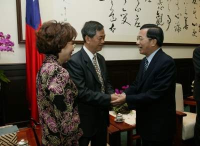 今天在此接見各位得獎企業的代表與個人,讓阿扁想起今年的奧運,台灣的運動健將終於為自己寫下歷史,一口氣奪得兩面奧運金牌,贏得多少國人同胞的熱淚與感動。然而,今年的奧運,全世界只有台灣得了金牌不能唱國歌、不能升國旗。我們都瞭解這有它的歷史背景,有它國際政治現實的一面,但我們有權利選擇,要像過去的政府默默承受這種歧視而不說一句話,或者選擇積極為自己的權益發聲,努力爭取國際社會正視台灣的存在。