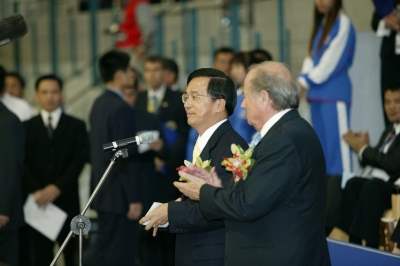阿扁希望此次的代表台灣的賽隊、選手能以最精湛的球技爭取佳績,相信我國代表隊一定會不辜負國人的期待。阿扁要再次歡迎各國嘉賓及選手,也希望大家此行都能滿載而歸,並祝大家身體健康、精神愉快!