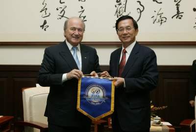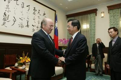 陳總統水扁先生今天上午接見國際足球總會(FIFA)主席布萊特(Joseph S. Blatter)一行,除代表我國政府及人民歡迎訪賓首次來台外,也對FIFA來台灣舉行世界盃五人制足球賽,表達誠摯歡迎之意。