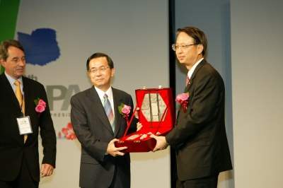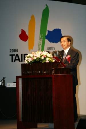 首先,本人謹代表中華民國政府及二千三百萬台灣人民,熱誠的歡迎各位貴賓遠道而來到台灣參加亞太地區民用航空界最重要的年度盛事。這一次的大會能夠在台灣舉辦,不但是我們的榮耀,更是讓大家認識台灣最好的機會,希望各位來自海外的朋友與貴賓,能到處走走,多多感受台灣人民的熱情與活力,從此喜歡上台灣、愛上台灣,不但以後有機會再來,更能積極的向所有的朋友們推薦,讓全世界能夠看見在太平洋之濱的美麗寶島-台灣。