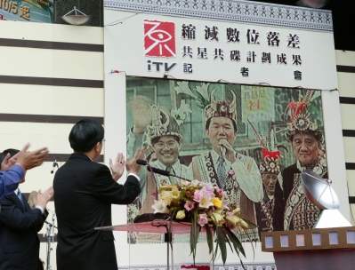 陳總統水扁先生今天下午參加「縮減數位落差-共星共碟計畫」成果記者會,詞致時特別感謝各相關單位的配合與促成,使得該項計畫可以有今天的成果,也期待籌備中的原住民電視台可以在明年正式開台,讓原住民朋友看到真正屬於自己的節目和頻道。