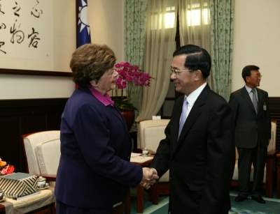 訪賓則表示,她很仰慕陳總統致力憲改的努力,她曾任猶他州憲政委員會委員,因此很了解要修改憲法是非常不容易的事。她很感謝我國的熱情接待,也邀請陳總統到猶他州訪問。