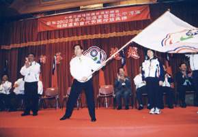 總統為我國參加「二00二年第八屆遠東暨南太平洋殘障運動會」代表團授旗