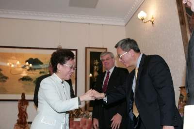 副總統並以圖表向訪賓解釋此次國會選舉的意義。副總統指出,民進黨在過去歷次立法院選舉最高得票率為去年的三十三點四,而今年得票率為三十五點七,較上次更為成長。因此,就民進黨的發展來看,此次選舉並沒有輸。而國民黨上次立法院選舉時期正值連宋分裂之後,所以得票率僅有二十八點六,但此次得票率為三十二點八,仍較民進黨為低。