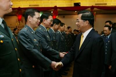 過去四年多以來,阿扁親訪過許多國軍部隊,除了感受到弟兄們的真誠及可愛外,最讓人印象深刻的是大家都有著「保家衛國,捨我其誰」的堅貞意志,這就是阿扁「軍隊國家化」最具體的實現,國軍不是個人或一黨一派的軍隊,國軍是中華民國的軍隊,更是二千三百萬台灣人民的軍隊,國軍「為國家生存發展和百姓安全福祉而戰」的中心信念,絕對是堅定而不可撼搖的,國家化的專業部隊才能獲得民眾的真正尊敬。