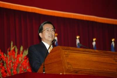 相信今天與會的各位嘉賓都是跟阿扁一樣懷著喜悅的心情,在這裡同享晉陞將軍們與寶眷們的榮耀。再一次的肯定各位的表現與奉獻,同時也期勉將軍們「熠熠將星」,象徵著責任的加重,必須要繼續奮起努力,開創軍事事業的顛峰。最後,阿扁還要再一次恭喜、感謝各位寶眷們,謝謝各位為國家的辛苦付出,感謝大家。