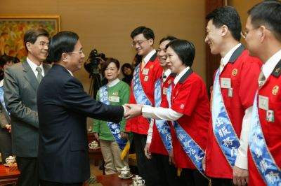 陳總統水扁先生今天強調,「台灣」這塊金字招牌是我們全民共同的資產,我們應該要以能夠使用「台灣」這個品牌而感到驕傲。「台灣」所代表的是一個成功且動人的故事,雖然我們必須面對非常艱難的外在環境,但這樣的考驗與挑戰,更應該激發我們的堅定意志,要堅強地站起來、勇敢地走出去。