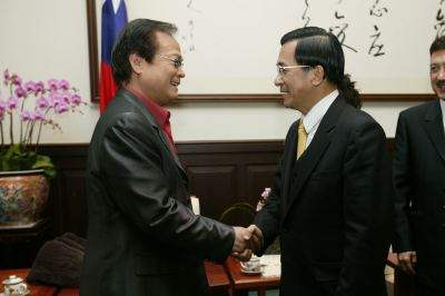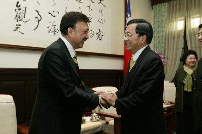 今天來府晉見總統的台灣文化演藝推展協會幹部包括:理事長余天、理事李亞萍、劉福助、郭金發、倪敏然、王識賢、羅時豐、余帝、洪榮宏、以及總幹事王英嵐。訪賓一行下午由行政院勞工委員會主任委員陳菊與新聞局長林佳龍陪同,前來總統府晉見總統,總統府副秘書長卓榮泰也在座。