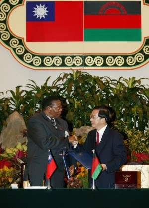 陳總統水扁先生今天上午在總統府與馬拉威共和國總統莫泰加(Bingu Wa Mutharika)共同簽署聯合公報。中華民國政府首長及馬拉威共和國訪問團成員也在場觀禮。
