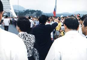 稍後,總統、副總統應邀參加台四線大溪外環道暨崁津大橋通車典禮,當地鄉親也以興奮歡愉的心情,扶老攜幼熱烈的參與此一地方盛事。典禮後,總統、副總統並和三位百歲人瑞及所有鄉親,大家興高采烈的徒步走過長二百七十公尺,造型流暢優美、宏偉壯觀的「崁津大橋」,共同分享地方建設成果的喜悅。