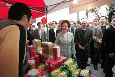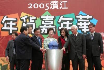 呂副總統秀蓮女士今天上午參加台北市濱江年貨嘉年華開幕典禮,除參觀年貨市場為所有攤商加油打氣外,並與台北市副市長葉金川共同主持按鈕儀式,象徵開啟濱江年貨大街蓬勃的商機,並祝福攤商們生意興隆,雞年賺大錢。