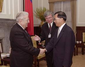 哈該博士及夫人一行上午由中華福音協進會主席夏忠堅牧師陪同,前來總統府晉見總統,總統府副秘書長吳釗燮也在座。
