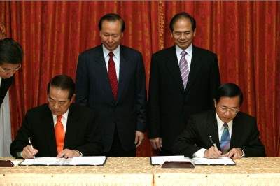 四、武力威脅或壓縮台灣的國際空間,均不利於兩岸關係的改善。為促成兩岸關係的正常化,並建立一個和平穩定的互動架構,雙方將凝聚朝野共識,共同推動有關兩岸和平發展的機制與法制化。