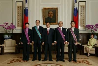 陳總統水扁先生今天分別頒授「一等卿雲勳章」、「一等景星勳章」、「一等景星勳章」及「二等景星勳章」給行政院前院長游錫堃、行政院前副院長葉菊蘭、總統府前秘書長蘇貞昌及行政院前秘書長葉國興,以表彰他們在任內為國家、社會所作的付出及貢獻。