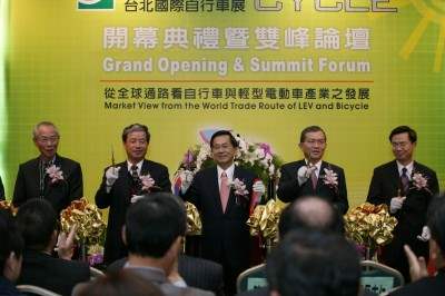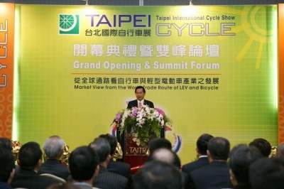 為了協助我國自行車業者拓展外銷市場,同時也提升業者的全球行銷能力,「外貿協會」自1988年起,即應國內自行車業者的要求,開始辦理本項的展覽會。18年來,在大家熱情支持和努力下,「台北國際自行車展」不但已經成為亞洲第一,更是全球第三大的自行車專業展,這種專業的成績也讓阿扁深深的感到與有榮焉。在這裡要再一次向主辦單位「外貿協會」,以及全國自行車輸出業同業公會表示由衷感謝與最高敬意。