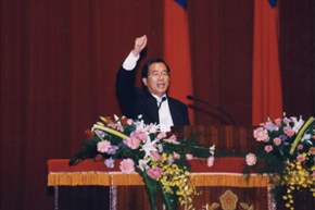 現在讓我們舉手高呼:自由民主萬歲!三民主義萬歲!中華民國萬歲!萬歲!萬萬歲!