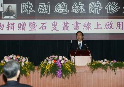 今天是故陳副總統辭修先生逝世四十周年紀念日,辭修先生的家屬與「國史館」選在這一天舉辦「陳副總統辭修先生文物捐贈暨石叟叢書線上啟用發表會」,格外的具有意義,而阿扁有機會參加這歷史的盛會,更感到十分的榮幸。